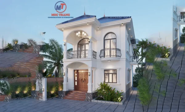 Phần ngoại thất của ngôi nhà có thể được ốp đá và sơn màu trắng kem, tạo cảm giác thanh thoát và sang trọng. Các chi tiết phào chỉ tân cổ điển được sử dụng một cách tinh tế, không quá cầu kỳ nhưng vẫn đủ để làm nổi bật nét đẹp cổ điển. Hệ thống cửa sổ và ban công thường được thiết kế lớn để đón ánh sáng tự nhiên, giúp không gian nội thất thoáng đãng và gần gũi với thiên nhiên.