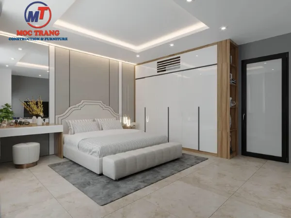 Phòng ngủ master: Phòng ngủ chính (master) thường được thiết kế với diện tích khoảng 18-20m², có cửa sổ lớn để đón ánh sáng tự nhiên. Nội thất của phòng ngủ nên lựa chọn những món đồ có màu sắc nhẹ nhàng, tông trắng, kem mang lại cảm giác dễ chịu. Bên cạnh đó là một phòng tắm riêng với các thiết bị hiện đại, tiện nghi.