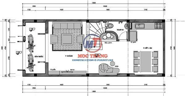 Thiết kế phòng khách cho mẫu thiết kế nhà 5x12m 3 tầng