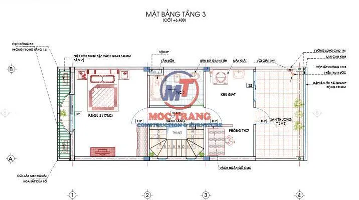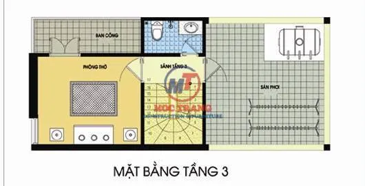 Tầng 3 gồm một phòng ngủ dành cho khách đến chơi nhà ở qua đêm, 1 phòng thờ, 1 nhà vệ sinh, khu giặt và sân phơi.
