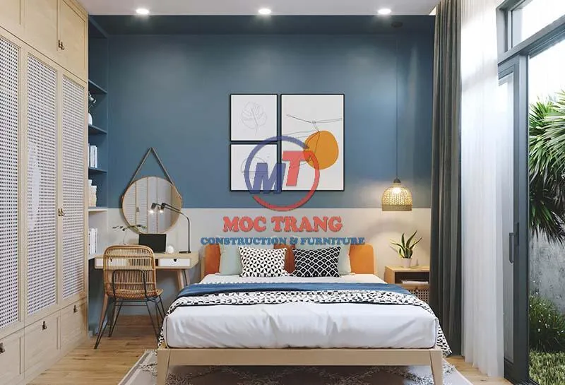 Ngoài ra, trong phòng ngủ gia chủ nên sử dụng gỗ công nghiệp hoặc gỗ tự nhiên cho giường và tủ để tạo nên tính đồng bộ.