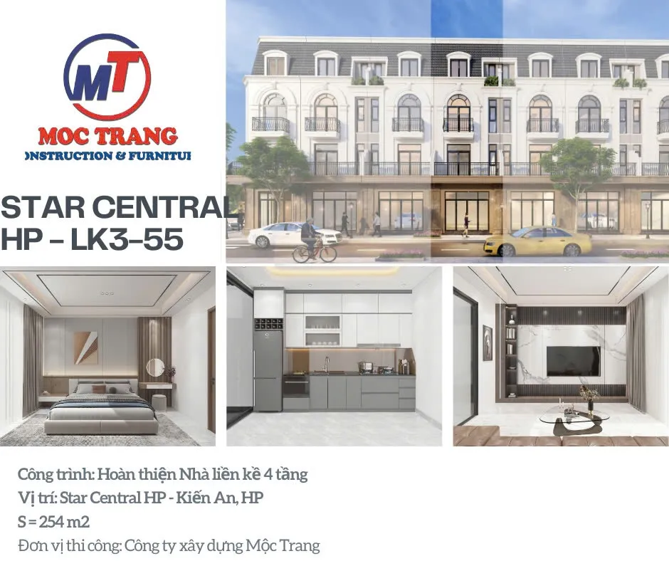 Công ty Xây dựng Mộc Trang vinh dự được lựa chọn là đơn vị thi công hoàn thiện dự án Star Central Hải Phòng. Mộc Trang sở hữu kinh nghiệm dày dặn và đội ngũ chuyên gia có tay nghề cao. Chúng tôi cam kết mang đến những giải pháp thi công tối ưu. Tất cả đáp ứng mọi tiêu chuẩn chất lượng và tiến độ nghiêm ngặt của dự án.
